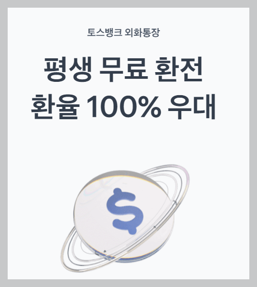 - 토스뱅크 외화통장이 토스뱅크 체크카드의 해외 결제 계좌로 지정한 경우, 국제브랜드, 해외서비스 수수료 면제 혜택제